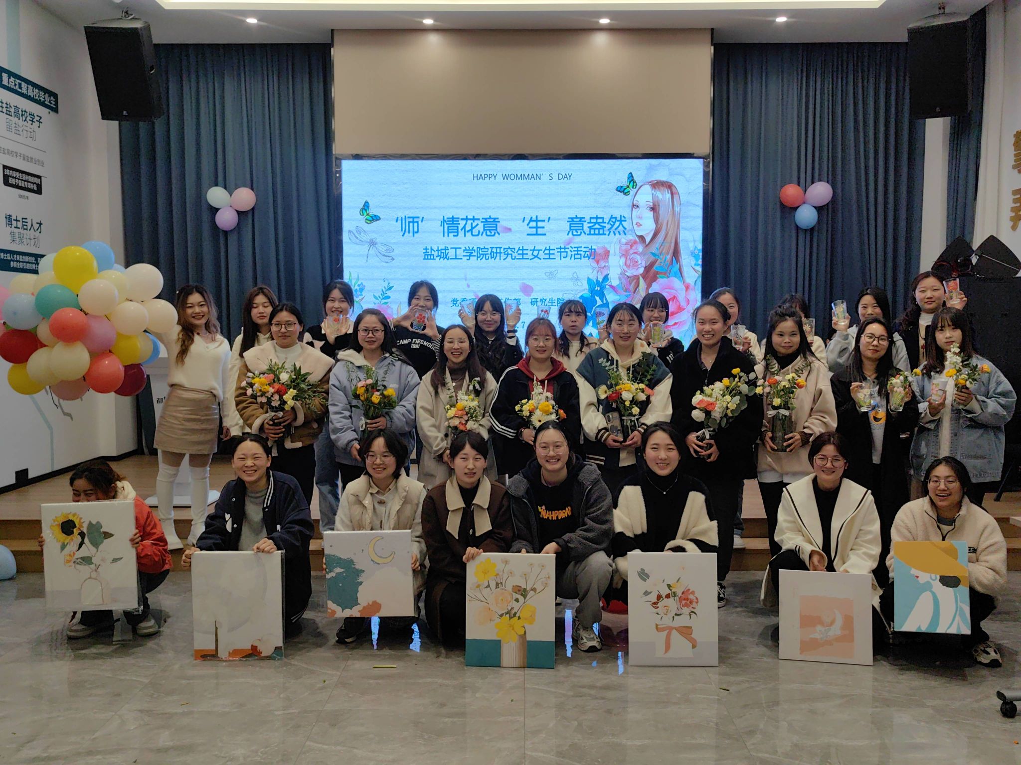 春风十里,百花争艳。在这个暖意融融的春日,为体现尊重女生、关爱女生的风尚,缓解紧张的科研压力,增强同学间的相互交流,党委研工部、研究生院开展了“师情画意 生意盎然”系列活动。本次活动共分为两个阶段,分别是3月7日晚上18:30在盐龙湖共享中心开展的研究生文娱活动和3月8日下午13:30组织的参观盐城市博物馆活动。党委研工部部长、研究生院院长许伟出席并致辞,党委研工部副部长、研究生院副院长刘正华,研究生院副院长徐桂中,研工部部分老师及全体2022级研究生女生参加活动。