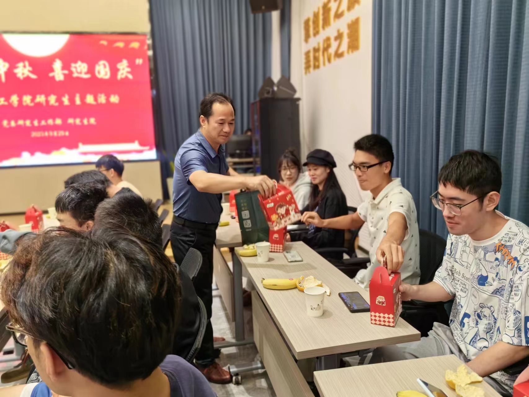 为欢度中秋,喜迎国庆,给假期留校的研究生送去温暖,9月29日下午,党委研究生工作部在汇文公馆共享中心一楼举办了“情满中秋 喜迎国庆”主题活动,党委研工部部长、研究生院院长许伟,研工部副部长、研究生院副院长刘正华,研究生管理办公室副主任李科,研究生辅导员薛凌云及留校的40余名研究生新生参加活动。
