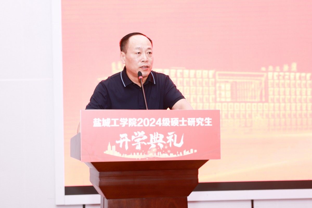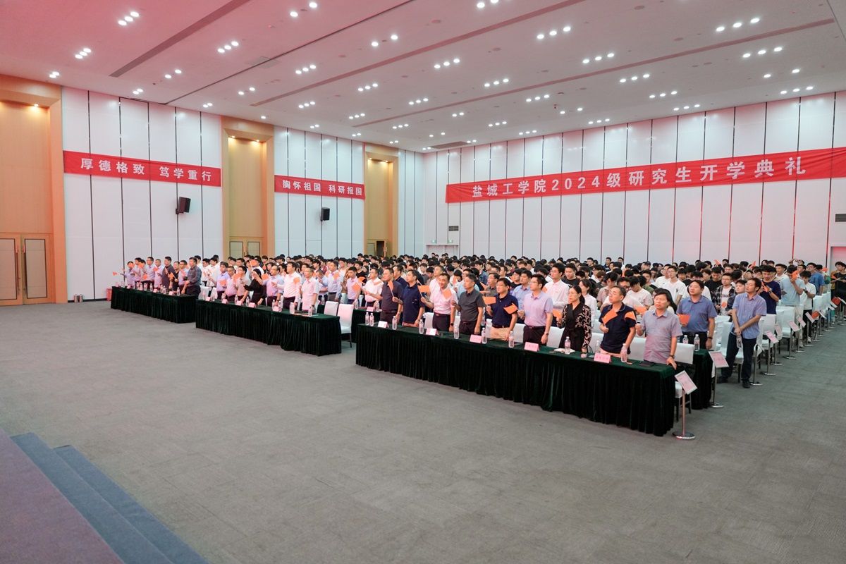 学校相关职能部门负责人,各研究生培养单位党政负责人,盐城高新区相关部门负责人,研究生新生辅导员,教师代表及全体2024级研究生参加。