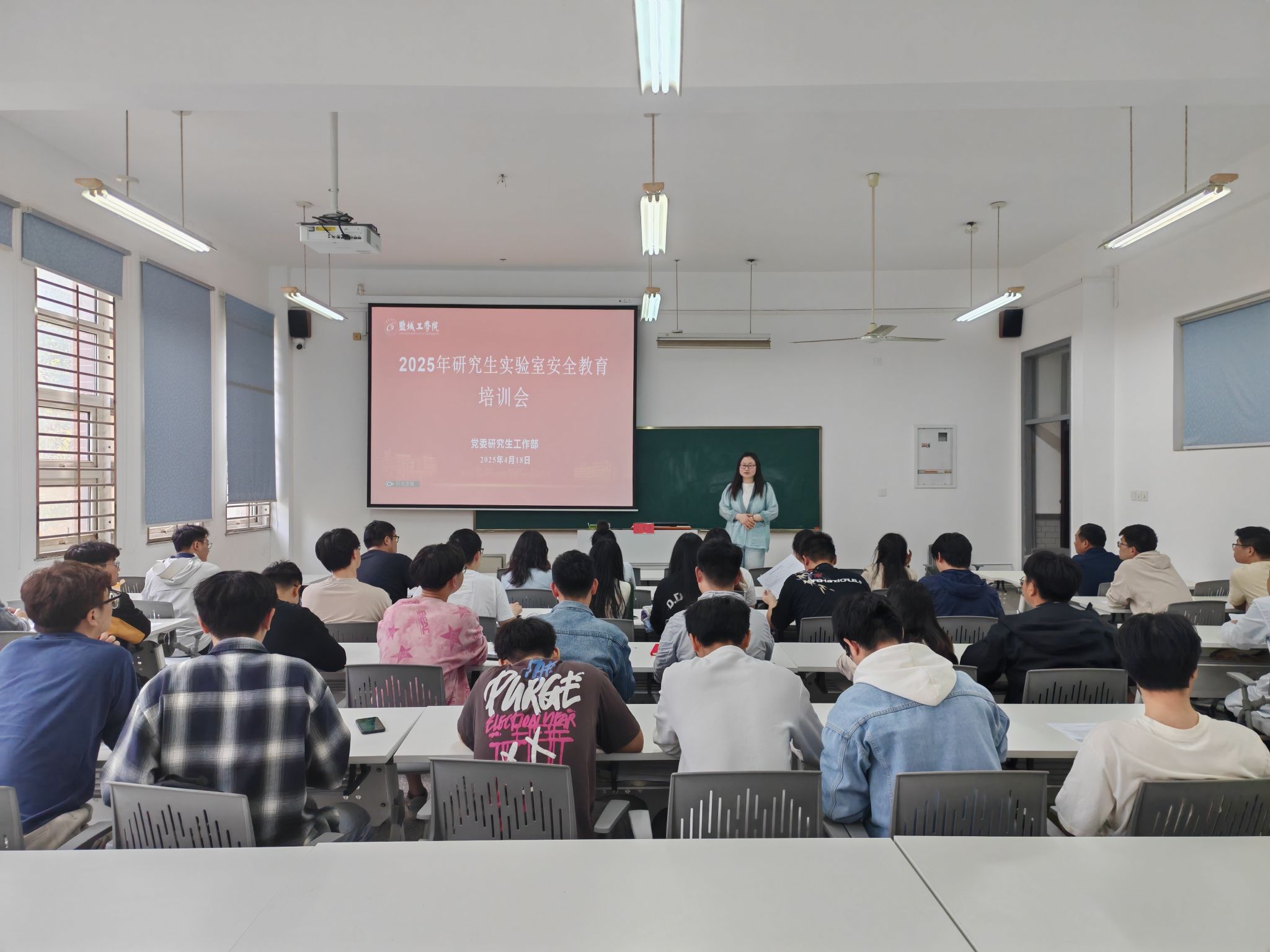 为强化研究生实验室安全意识,提升实验室隐患排查能力,党委研工部于4月18日下午在仁和楼A103教室举办 2025 年研究生实验室安全教育培训会。本次培训会特别邀请化学化工学院实验中心主任冒爱荣以《实验室隐患排查能力提升培训》为主题作专题报告。来自各学院的实验室安全排查志愿服务队骨干成员共40余人参会。会议由党委研工部副部长姜华主持。