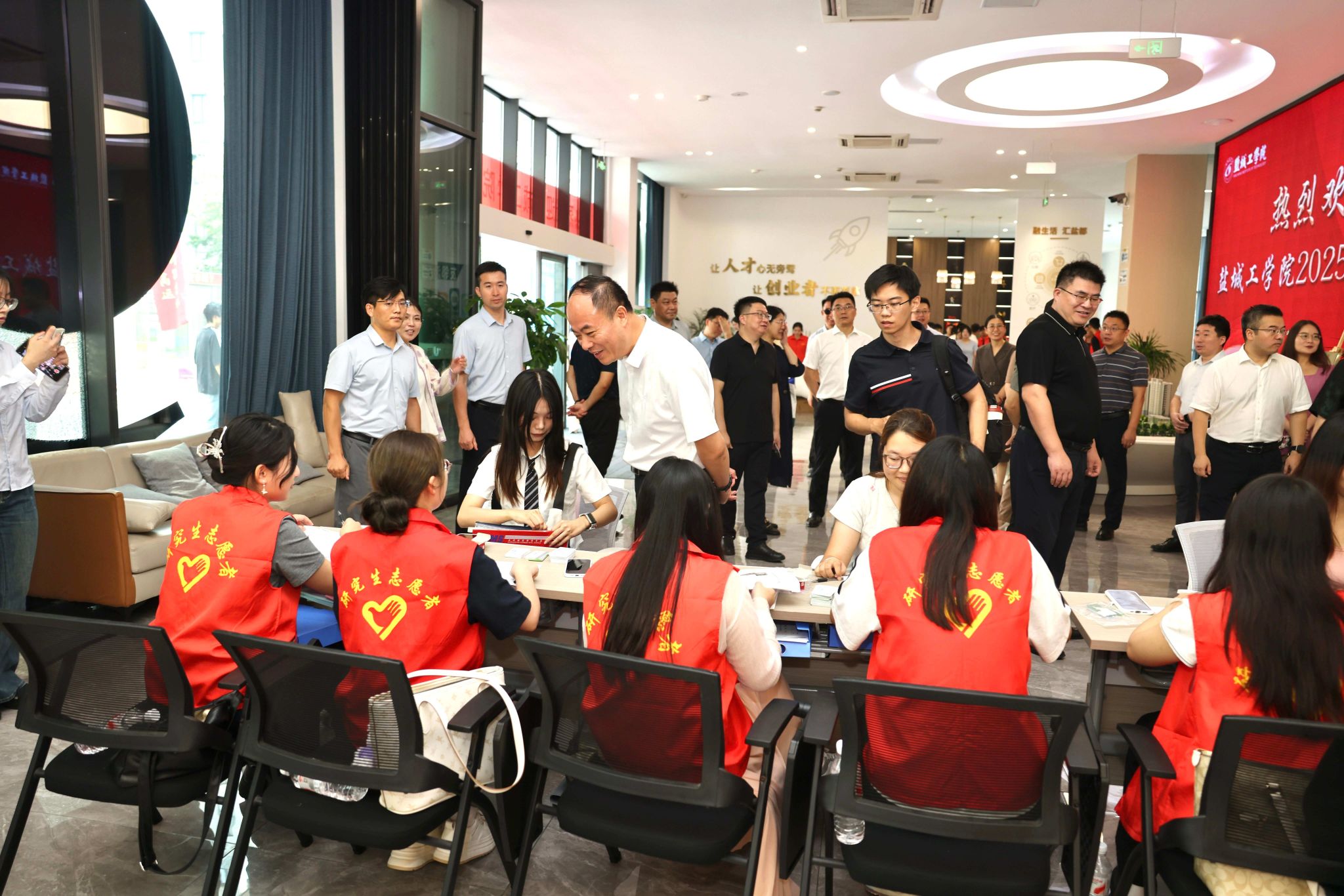 在迎新服务现场,校党委书记方海林,党委副书记、校长邵荣,党委副书记薛浩,党委常委、副校长王伟、张勤芳、邢晓平,盐城高新区管委会副主任陶敬国,学校相关职能部门、盐城高新区等部门负责人深入新生报到点和研究生公寓实地检查并指导迎新工作。校领导与前来报到的新生亲切交流,细致了解手续办理、住宿安排等情况,向大家表示热烈欢迎,并鼓励同学们尽快适应新环境、融入新生活,自信开启学术新征程。校党委书记方海林,党委副书记、校长邵荣一同为家庭经济困难学生代表发放“爱心礼包”和助学金,勉励大家勤学善思、笃行不怠,以奋斗姿态书写闪亮青春。校领导还亲切慰问了一线教职工和志愿者,对大家周到细致的服务给予高度肯定,并叮嘱注意劳逸结合,确保迎新工作安全、高效、有序推进。