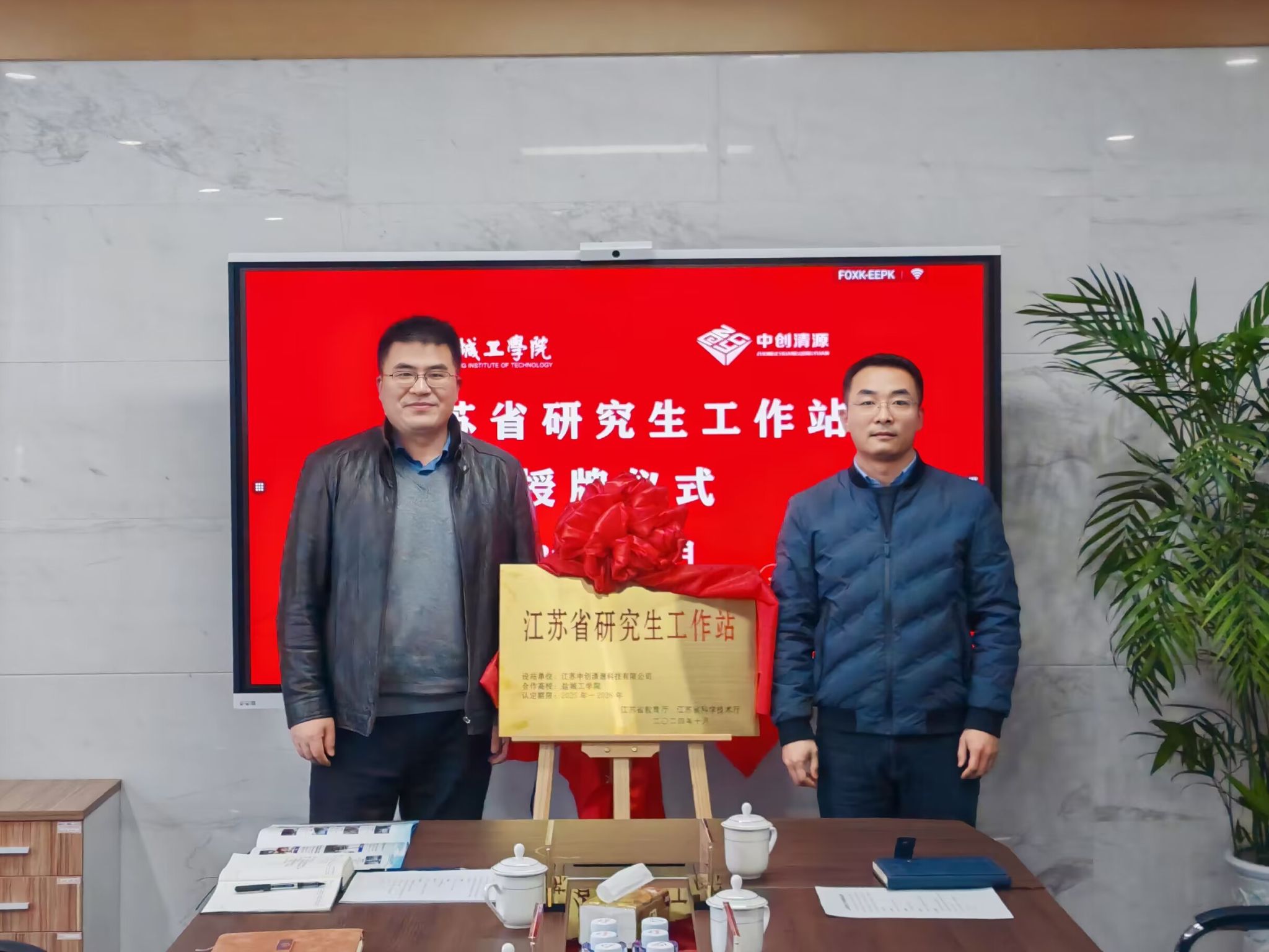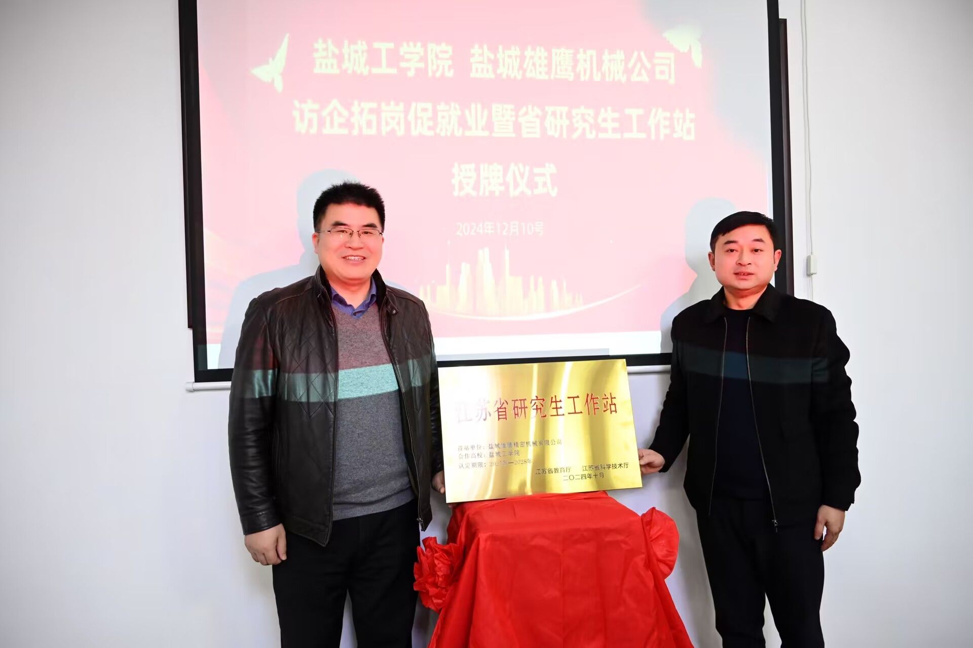 12月10日下午,党委常委、副校长张勤芳为江苏中创清源科技有限公司、盐城雄鹰精密机械有限公司等两家江苏省研究生工作站授牌。江苏中创清源科技有限公司副总经理霍文强、盐城雄鹰精密机械有限公司董事长郭乃宏热情接待我校一行。