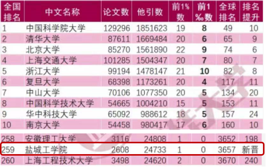 数据显示,我校在ESI源期刊发表论文2608篇,他引次数为24733次,列全国高校ESI排名第259位。其中工程科学发表论文382篇,他引次数为3115次,篇均他引8.15次,在该学科进入全球前1%的高校和科研机构中排名第1677位。